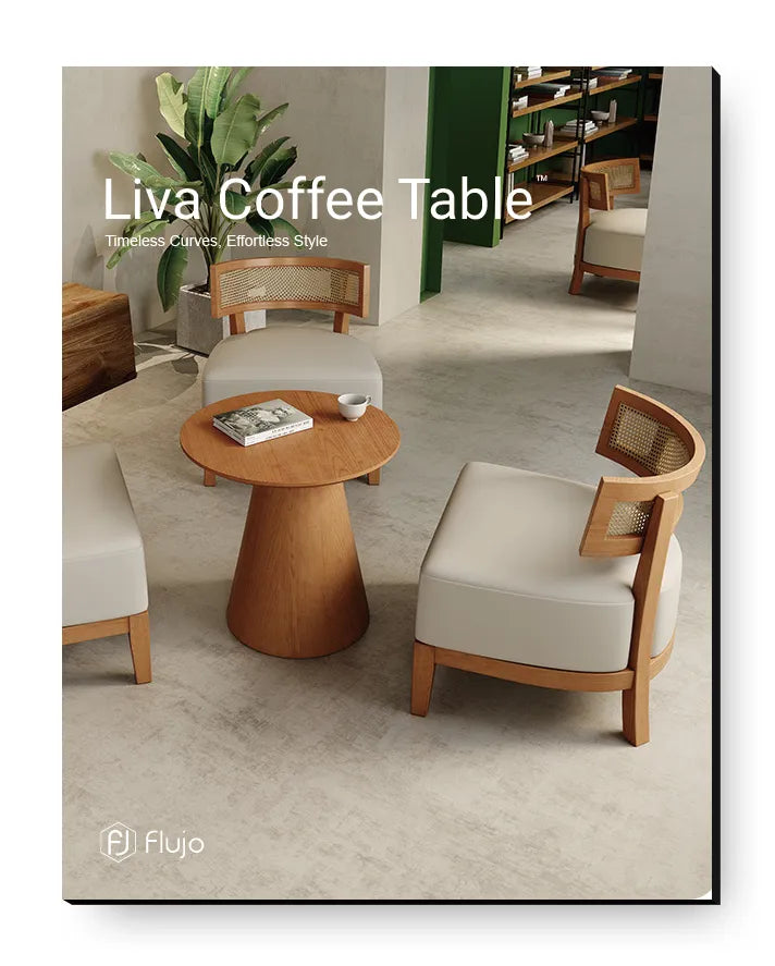 The Flujo Liva Coffee Table blends simplicity with elegance, featuring a scratch-resistant wood laminate surface that adds warmth and sophistication to any setting.