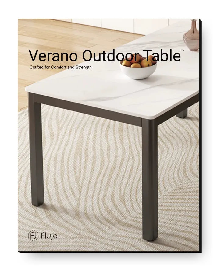 The Verano Outdoor Table offers style and durability with its weather-resistant marble top and sturdy metal frame—perfect for patios, gardens, and poolside lounging.