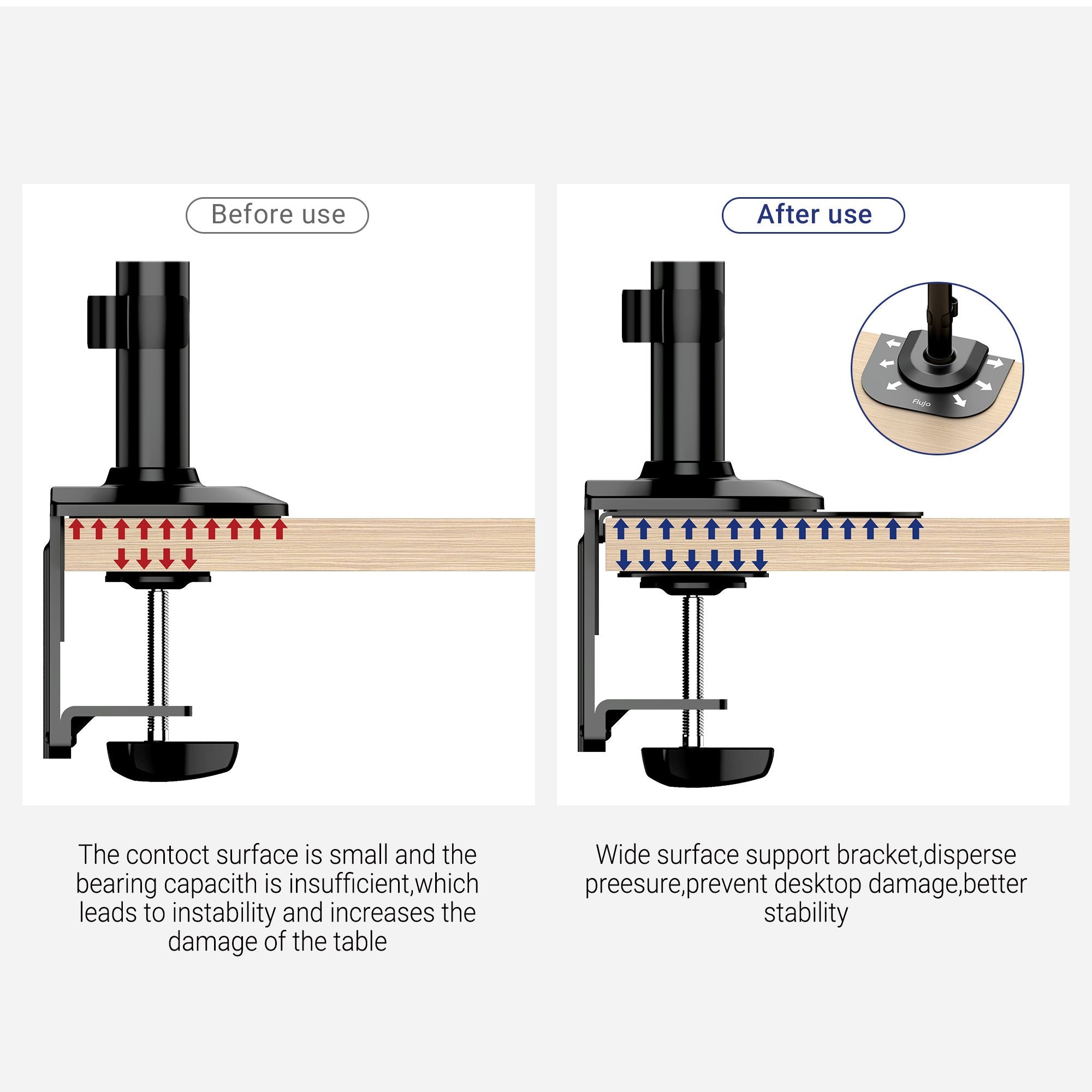 - Reinforcement Brackets Plate : It is a aluminium alloy reinforcement bracket kit that adds extra support to your desk clamp and monitor setup.